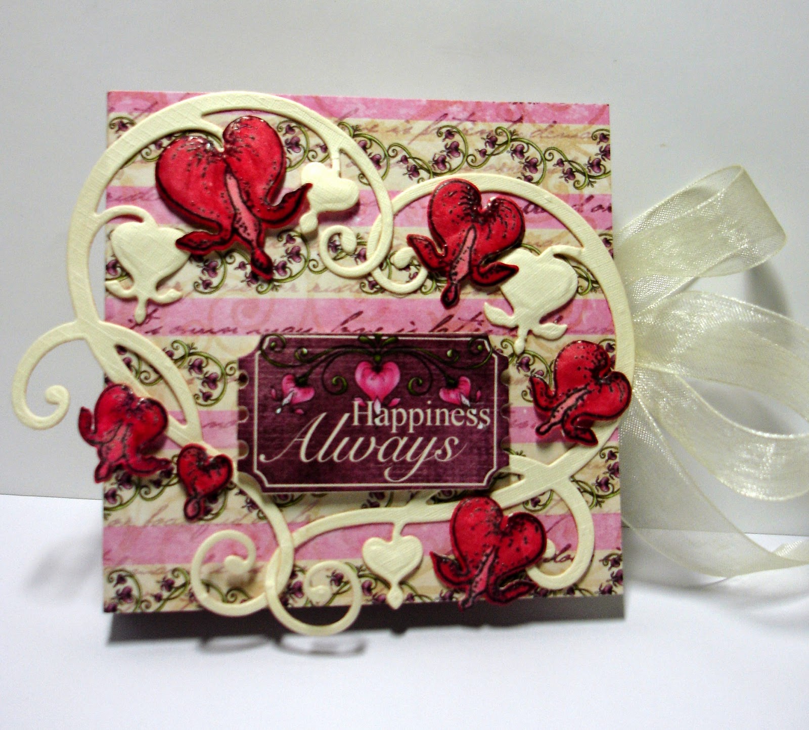 Here is my project this week for Heartfelt Creations.  I took a photo of this card when I first started  putting the elements together.  I wanted it to be pinkish, pink flowers and a topper with pink in it.  So from this.....